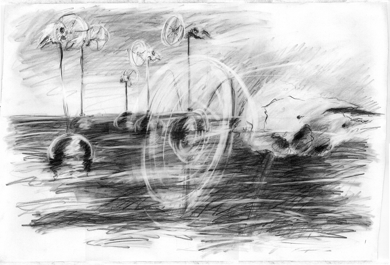 The bones found me again in Barcelona. During a trip to Bilbao, at Puente de la Reina, near Jaca, 15 sun-bleached sheep skulls from the dry river bed of the Río Aragón decided to accompany me. In February, they were joined by the entire skeleton of a cow. It had met its fate in a gorge in Garrotxa, and had waited patiently for me on the side of a path all winter long. The collection of animal parts were integrated into a series of sculptures two years later, and exhibited from March until June, 2000, in a show entitled Milk and Wool, which had been organized by Dasign, the agency of a previous college mate, Ingeborg Scheer. 13 buoys made with sheep skulls and propellers disappeared into the Mediterranean the following year.